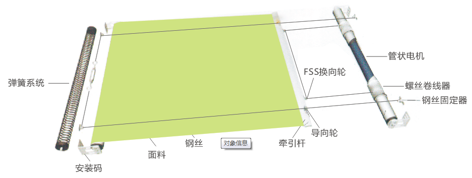 1. 系统使用一台管状电机和一套弹簧系统 2. 电机提供动力 91香蕉app汅站无限看. 强簧系统圈卷张力.