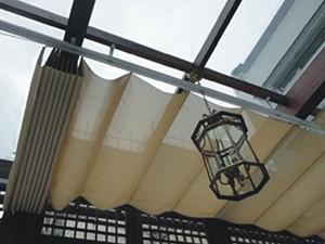 适用于家庭、酒店、别墅、办公大楼等大型公共场所玻璃窗采光顶的遮阳折叠式天棚帘